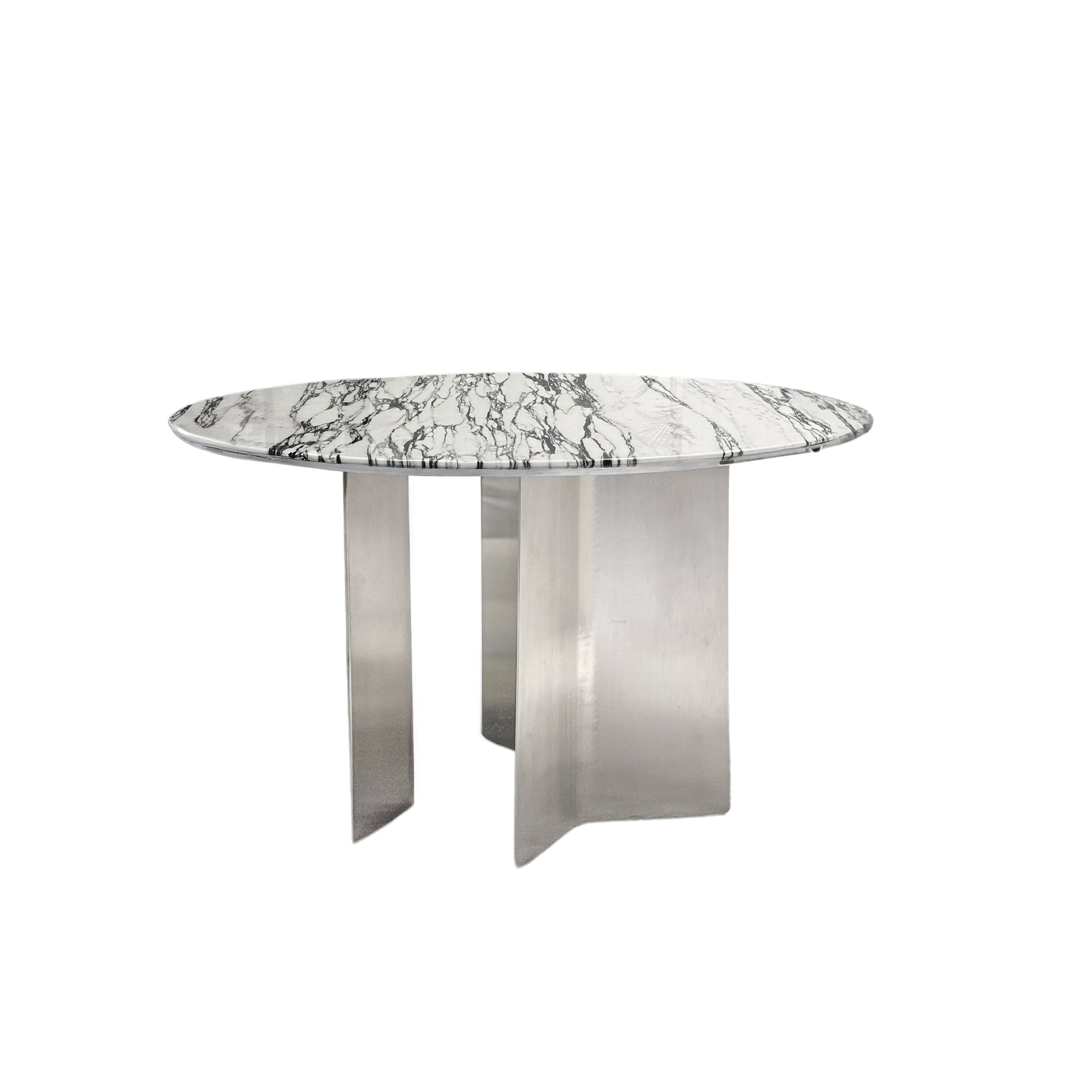 Dining table Tronget D130 H76 - Stainless steel base brushed - Italian blue white marble - Bevel edge