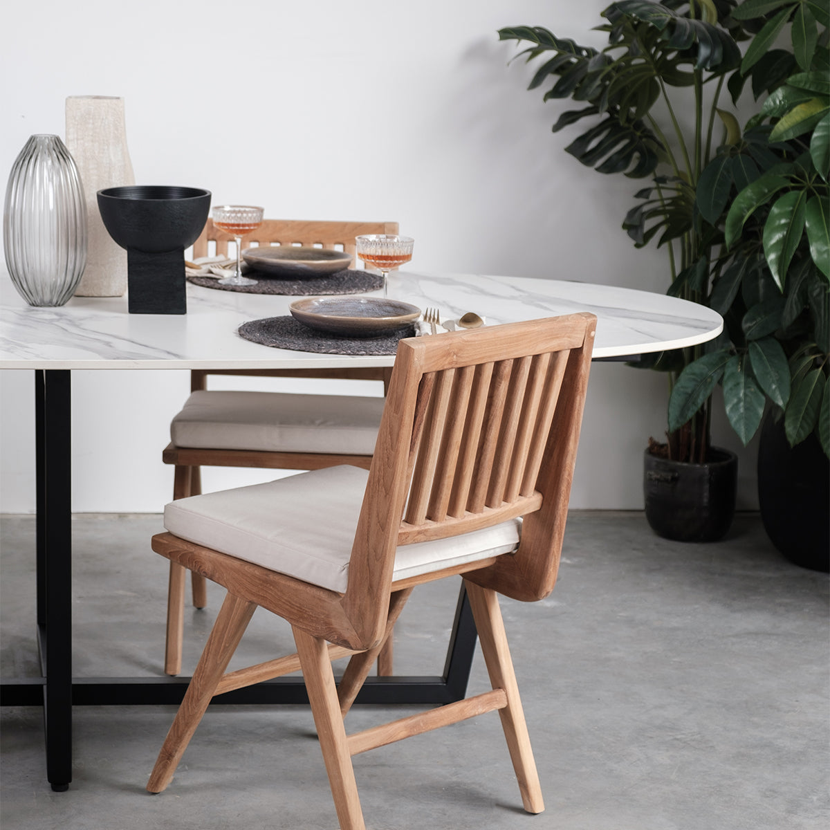 Our Lina garden chair without armrests is a beautiful addition to your garden. The seat and back are both made of teak. Combine this garden chair with our wooden outdoor tables and our Liam garden chair with armrests.